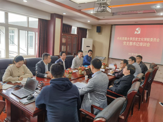 党委在荟文楼520会议室举办党支部书记专题培训,全体党委委员和党支部书记参会。