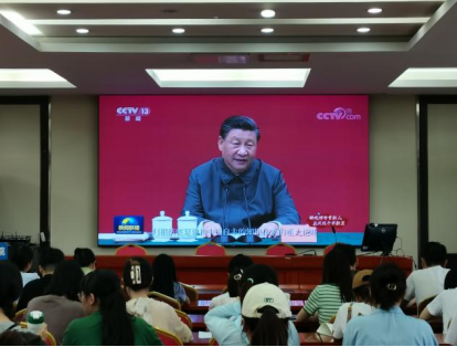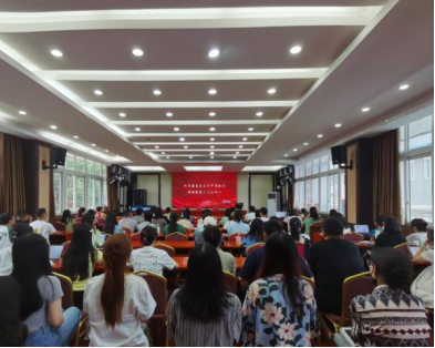 党委组织全院学生党员在荟文楼7楼报告厅集中收看、学习教育部思政司主办的“铸魂增智育新人 正风促干书新篇”2023年高校党组织示范微党课展播第一讲。