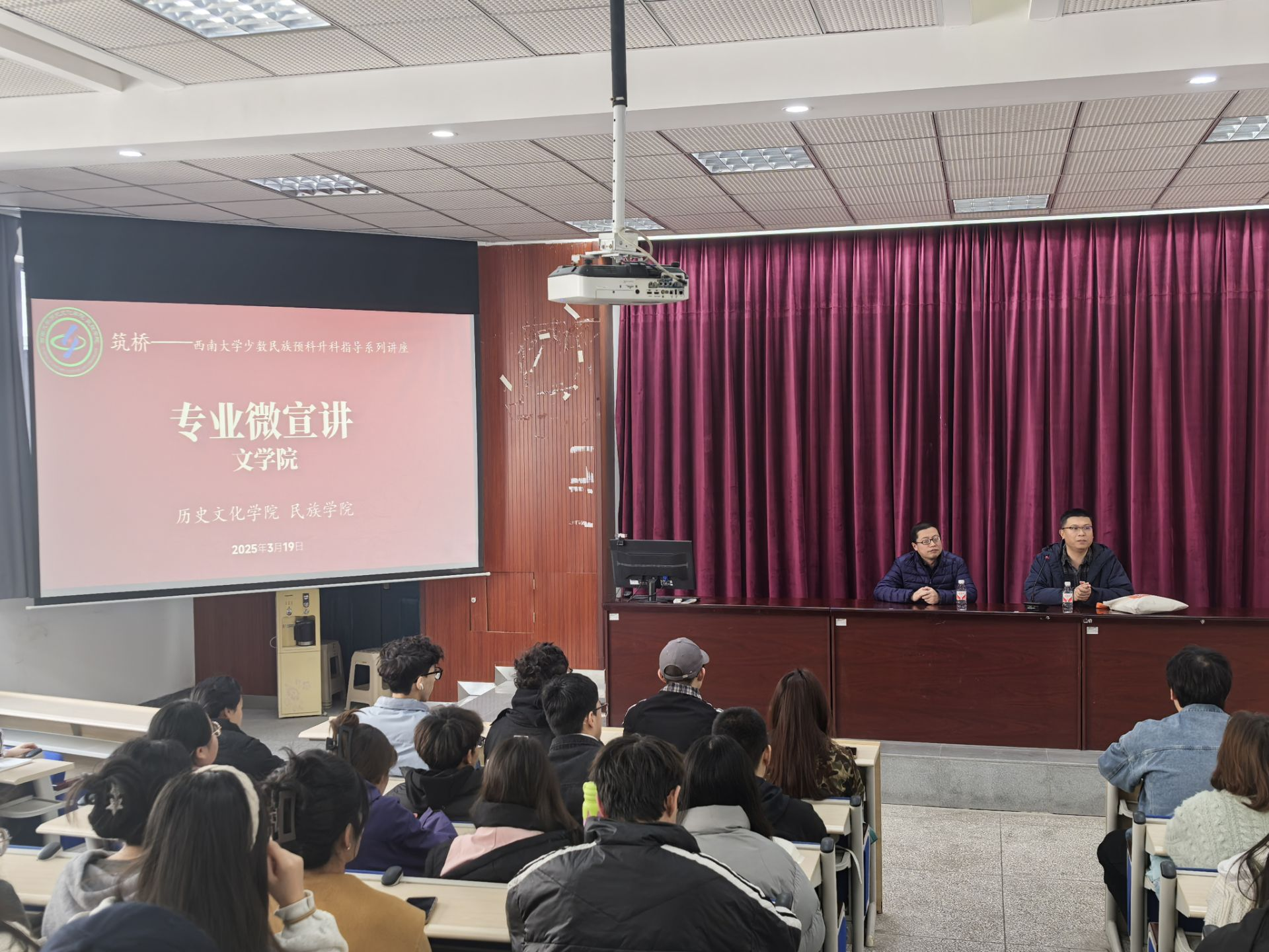 教学副院长张春泉作为主讲嘉宾进行宣讲。张院长以深厚的学术底蕴和丰富的教学经验,为在座的预科同学带来了一场精彩的专业宣讲。他详细介绍了汉语言文学专业的课程体系,让学生们对该专业的知识架构有了清晰的认识;阐述了专业的发展前景,激发了同学们对汉语言文学的兴趣与热爱;着重解读了专业的意义与地位,帮助学生们理解汉语言文学在学术领域及社会发展中的重要性;同时,还分享了学习方法与未来方向,为学生们未来的专业学习和职业规划提供了宝贵的指导和建议。