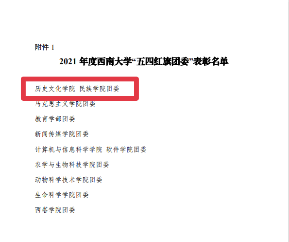 团委荣获2021年度西南大学“五四红旗团委”称号。