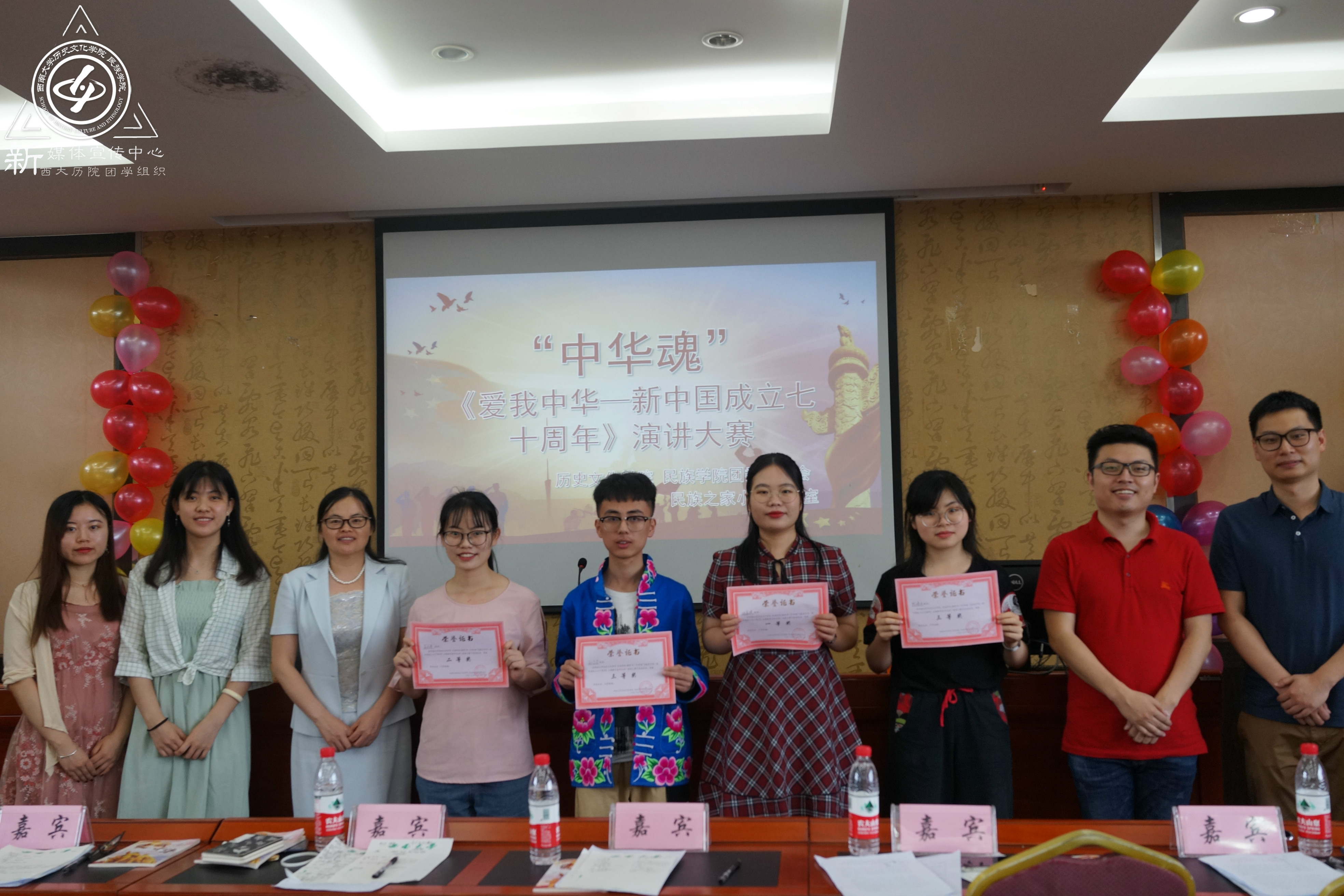 在荟文楼7楼报告厅成功举办“中华魂”《爱我中华—新中国成立七十周年》主题教育读书活动演讲比赛。李立老师,李小红老师,吴文杰老师、张媛媛学姐、王若曦学姐等出席本次活动。