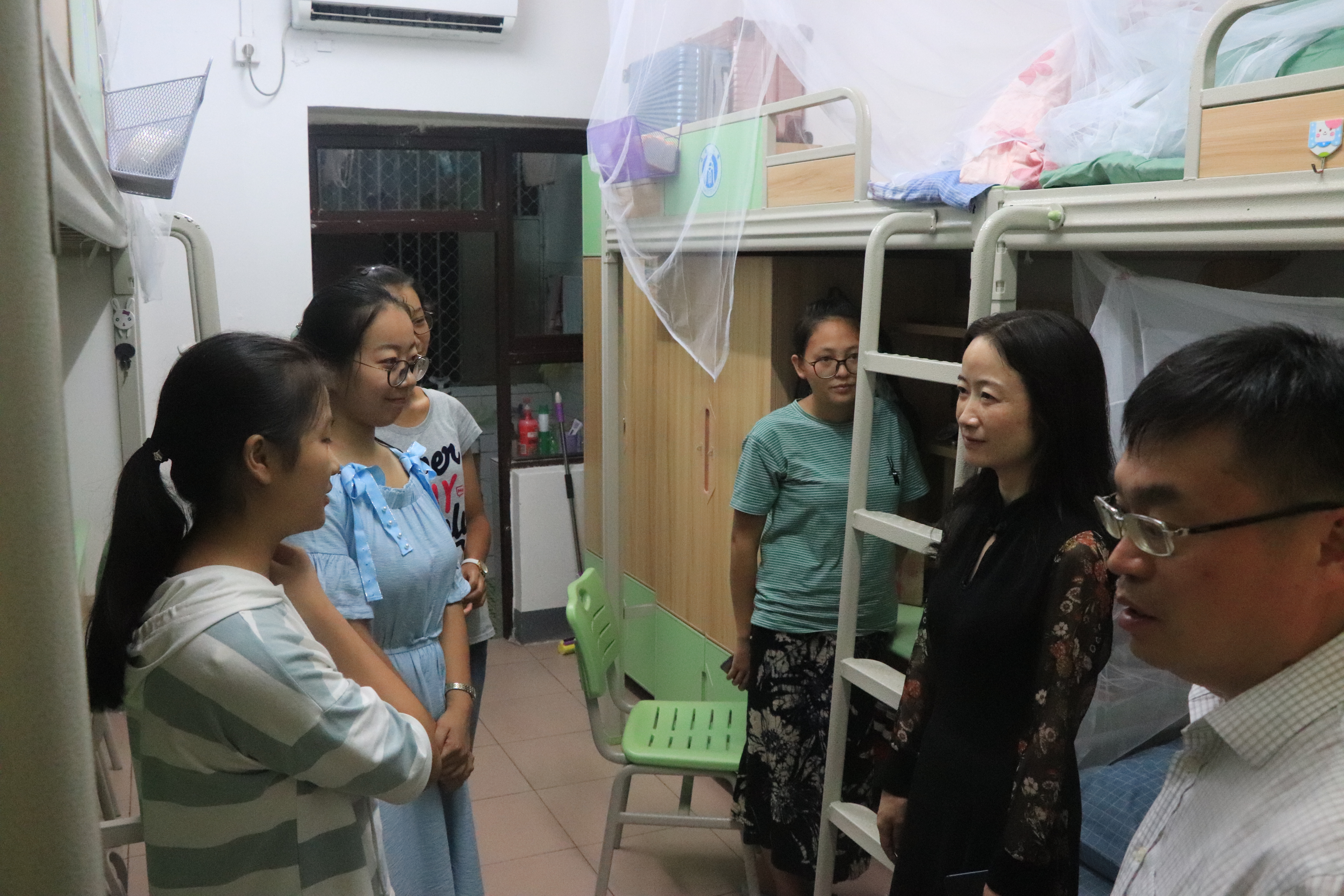 领导及老师来到本科及本科新生所在的桃园四舍、桃园六舍和桃园二舍,仔细询问了新生们住宿的情况,对新生们对学校生活以及宿舍生活的适应情况进行了详细的了解,还与正在宿舍的新生家长进行了亲切地交谈,关心地询问家长来到学校后的情况。