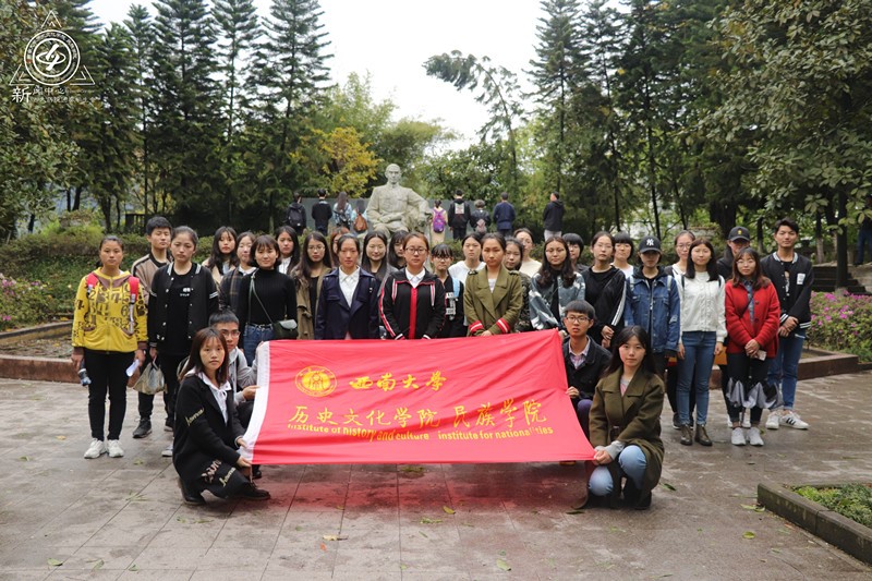 短暂的激昂过后,是长久的沉默。全体同学庄严肃立,凝视着眼前的墓碑,表达对作孚先生绵绵的思念和真挚的敬意。默哀告一段落,同学们拿起工具,清扫陵园。下午四点,大家聚于墓前,拍照留念,随后踏上返程。