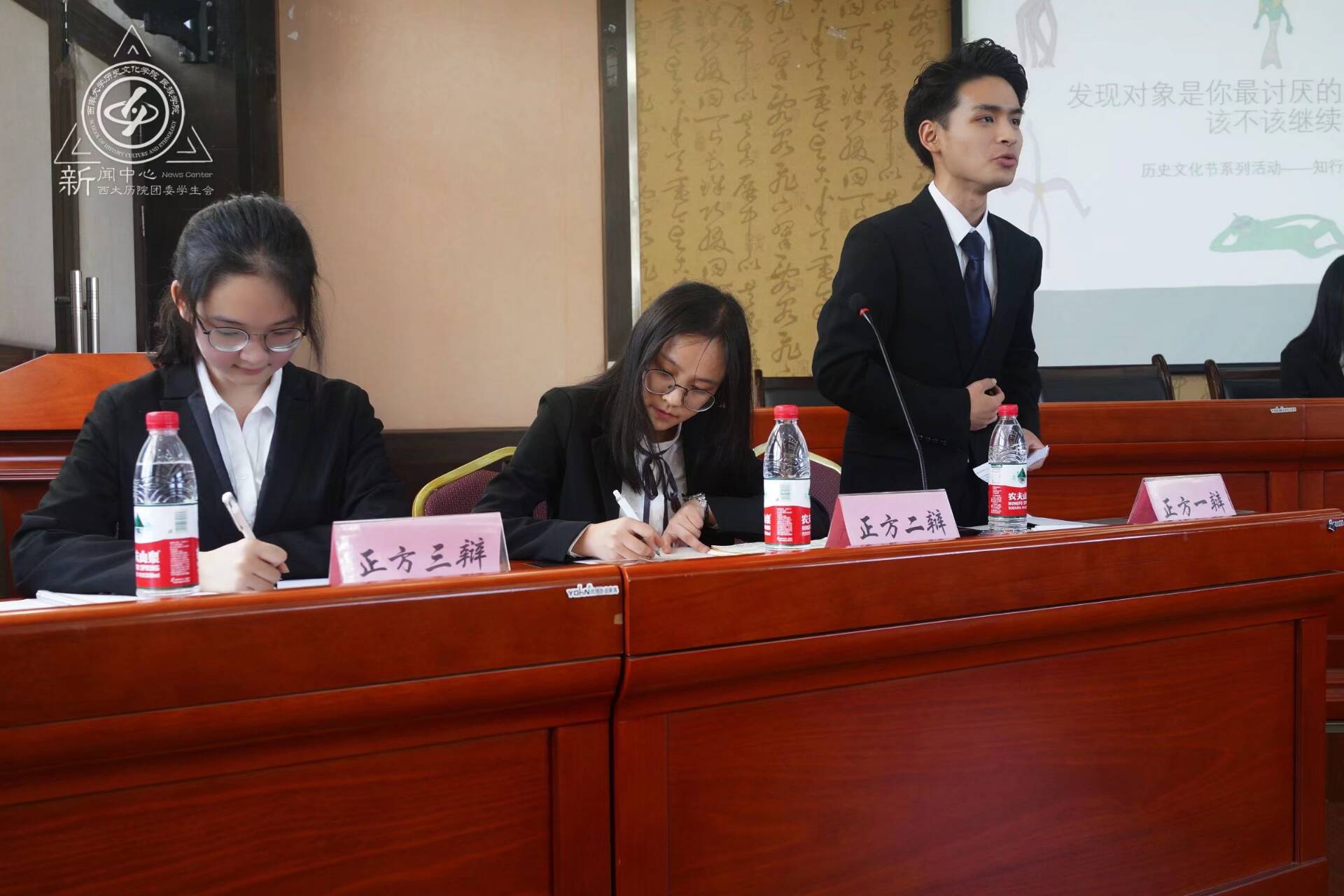 特地在历史文化节期间举办辩论赛表演赛,借以体现大学生活的多彩,展示新一代大学生的新风姿。辩论主题为“你突然发现你的对象是自己最怕的动物成的精,还应不应该继续”的表演赛于5月13日下午3时在九教七楼报告厅正式开始。