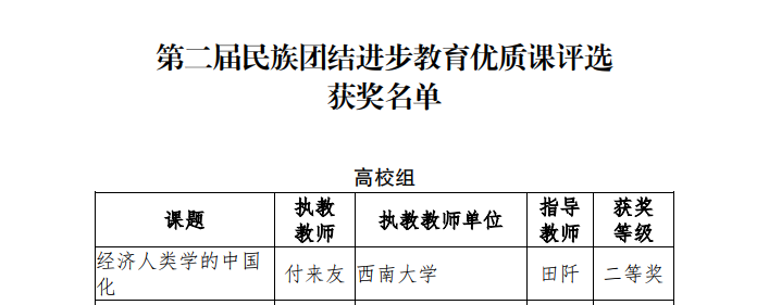 付来友老师执教、田阡老师指导的《经济人类学的中国化》荣获二等奖。