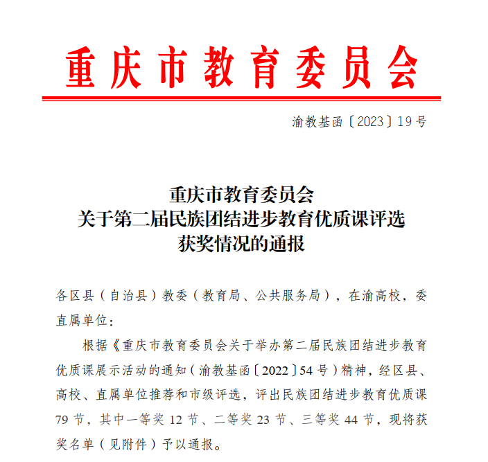 2023年3月10日,重庆市教育委员会正式公布了第二届民族团结进步教育优质课评选获奖情况的名单。由足球即时比分直播