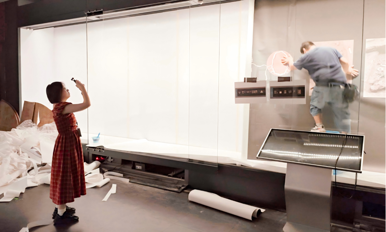 图8 殷富艳同学正在拍摄临时展厅布置素材