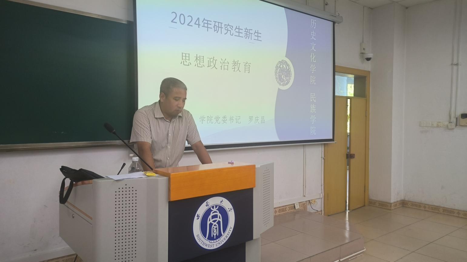 院党委书记罗庆昌为研究生新生做思想政治教育