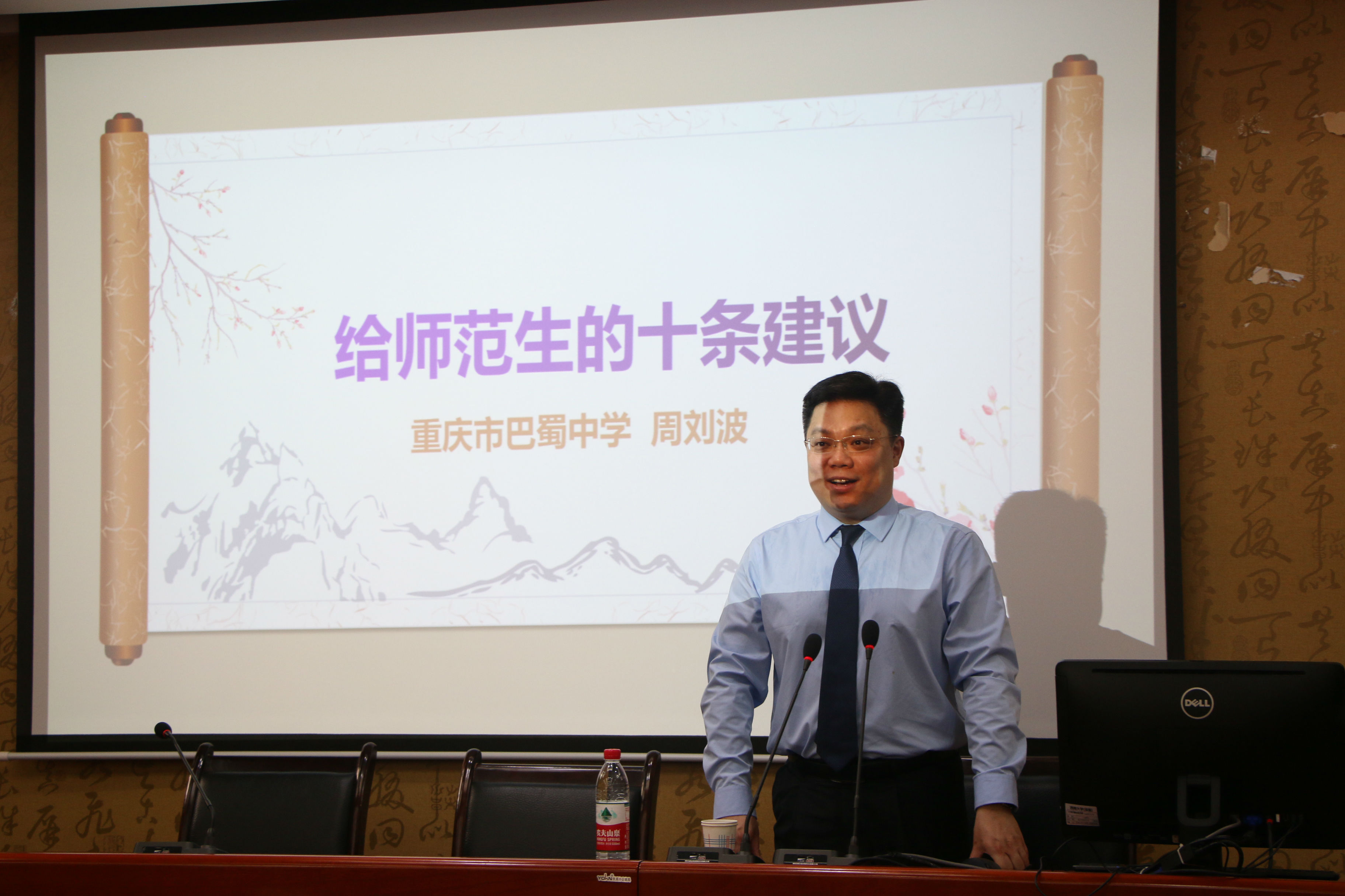 周老师着重讲解了“保持独立思考与写作的习惯”这一条建议,强调了“看法”的重要性。他指出,一流的教师应有自己的教学风格、教学体系以及学科价值观,并能用富有内涵且生动的思想点燃课堂。而思考的最好方式就是写作,周老师建议同学们要养成每天写作的习惯,以思考和写作来训练研究性思维,为以后的职业发展之路奠定基石。