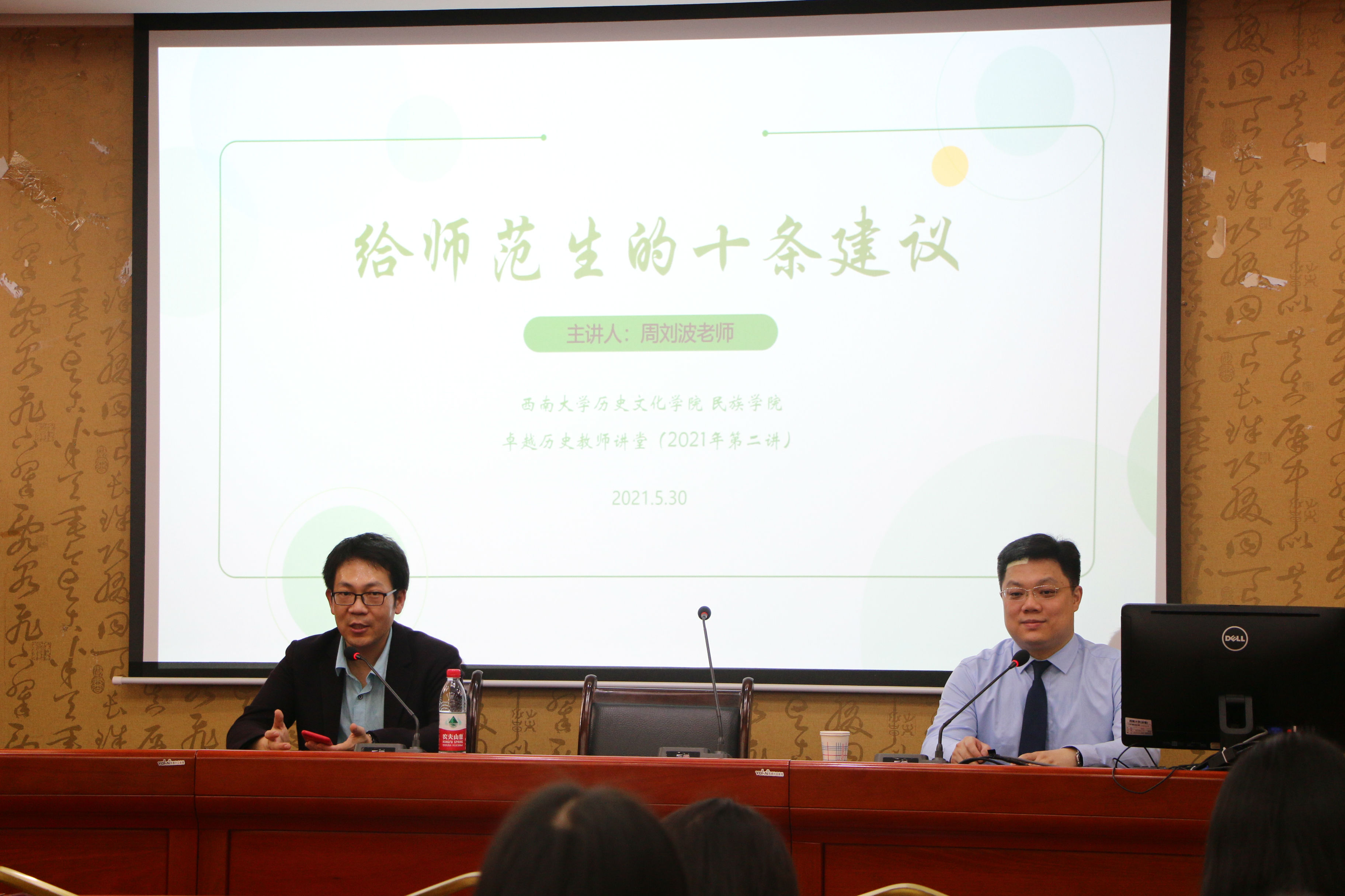 2021年5月30日下午卓越历史教师讲堂2021年第二讲在荟文楼7楼报告厅开讲。本次讲座由正高级教师、“国培计划”专家库入选专家周刘波老师主讲、西南大学足球即时比分直播 副院长李晶主持,足球即时比分直播 100余名师范生参加了本次讲座。