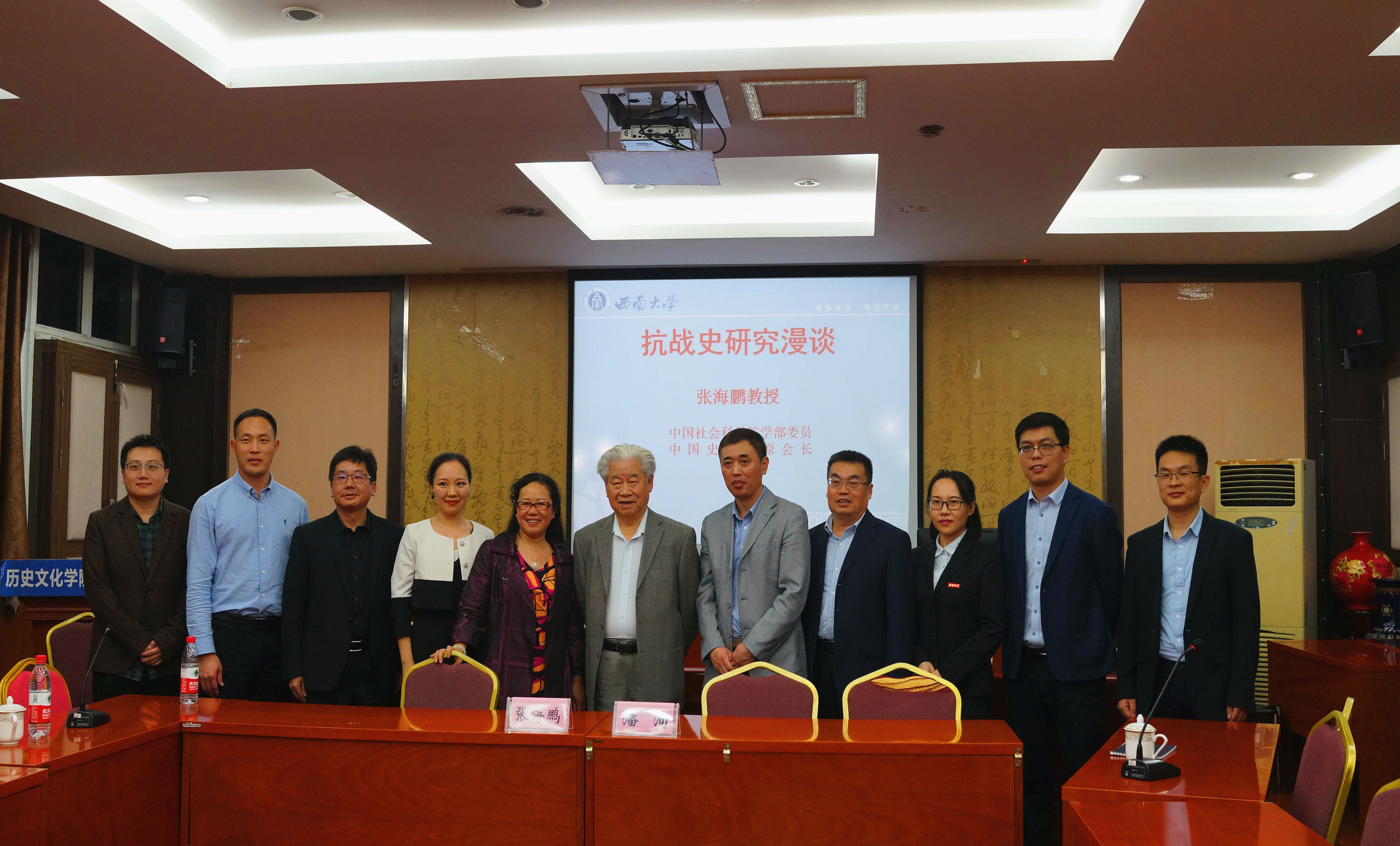10月16日晚7点-9点,由足球即时比分直播 、中国抗战大后方研究协同创新中心开展的“抗战史研究漫谈”学术座谈会在荟文楼七楼学术报告厅举行。本次座谈会由中国社会科足球即时比分直播 学部委员张海鹏教授主讲,校党委副书记潘洵教授主持,黄贤全教授、邹芙都教授、刘志英教授等师生近百人参与此次座谈。