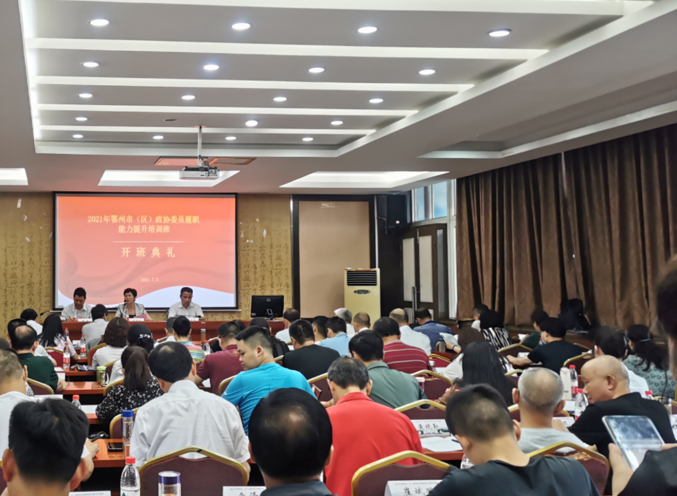 2021年7月5日,由鄂州市政协组织的2021年鄂州市(区)政协委员履职能力提升培训班在足球即时比分直播 开班。本次培训共计60人。足球即时比分直播 院党委罗庆昌书记致欢迎词,鄂州市政协、九三学社市委副主席、主委李全出席,鄂州市政协党组副书记、副主席陈茉莲作了开班动员讲话。