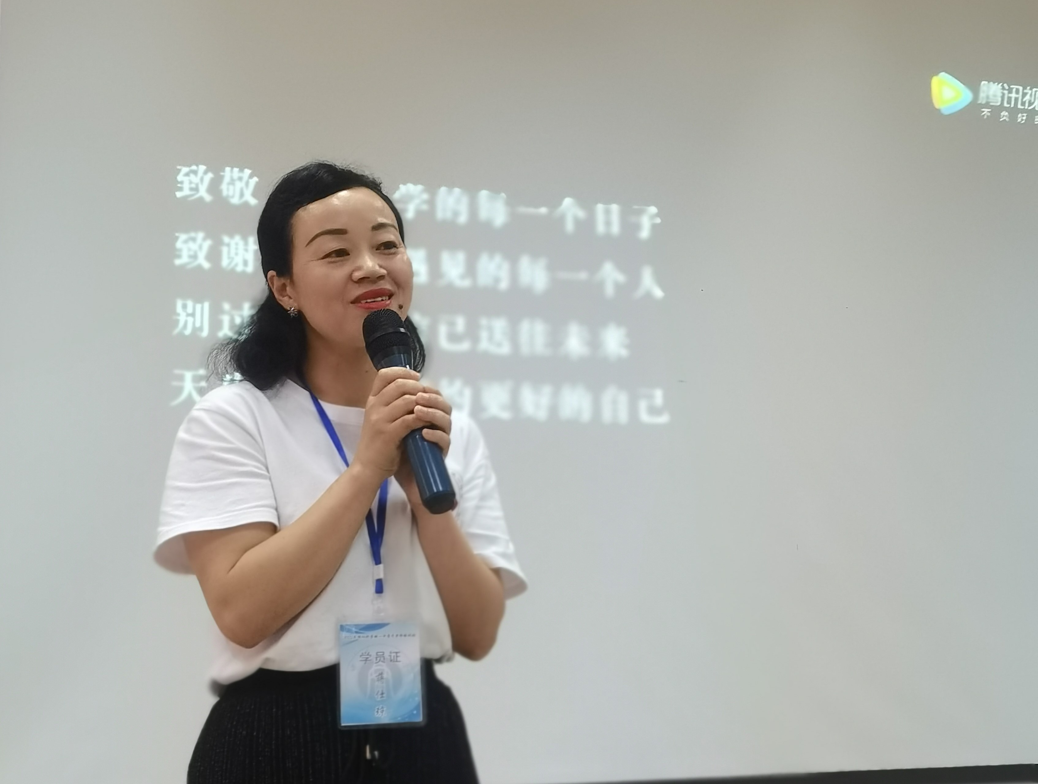 培训总结会和结业典礼由班主任高海燕老师主持。付军、龚海瑞、赵艳和陈露茗四位老师代表各学习小组,分享了此次学习的收获和感悟,蒋仕琼副校长以“打开方式很高级、很青春、很丰满”三个关键词对本次培训做了精彩总结,王勇副院长肯定了学员们学习热情,并勉励学员们再次出发,壮行千里,一生向阳。