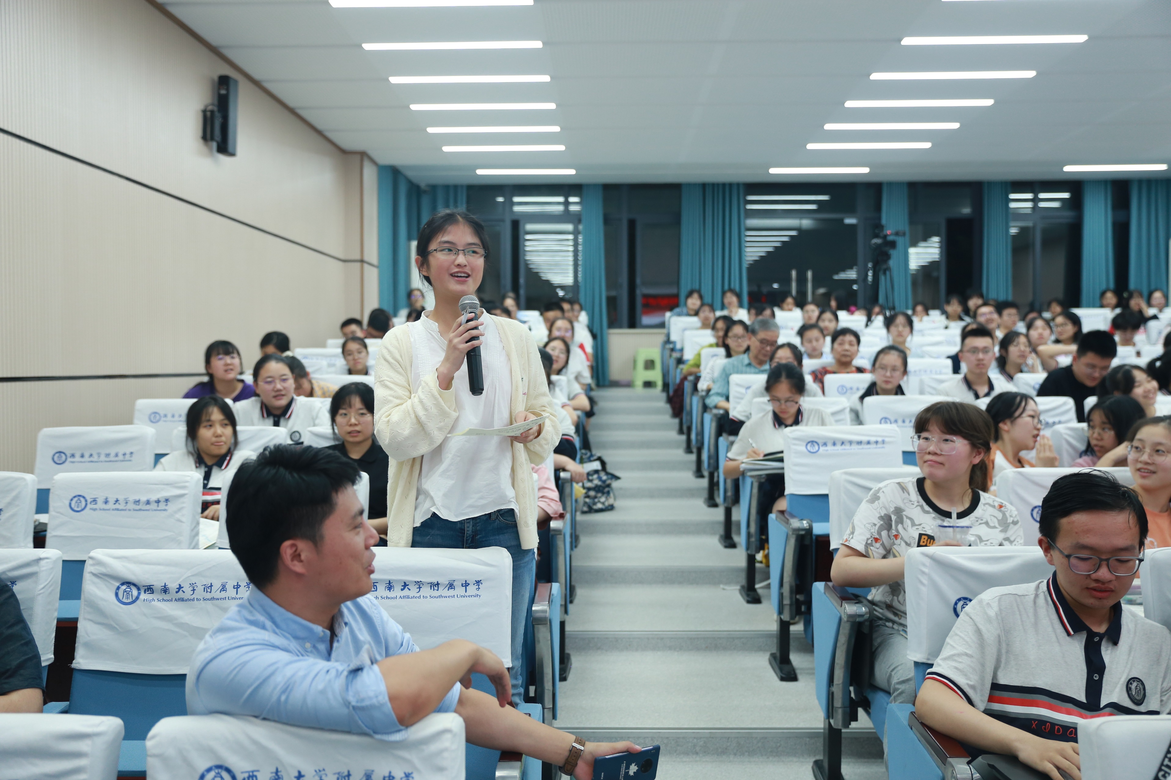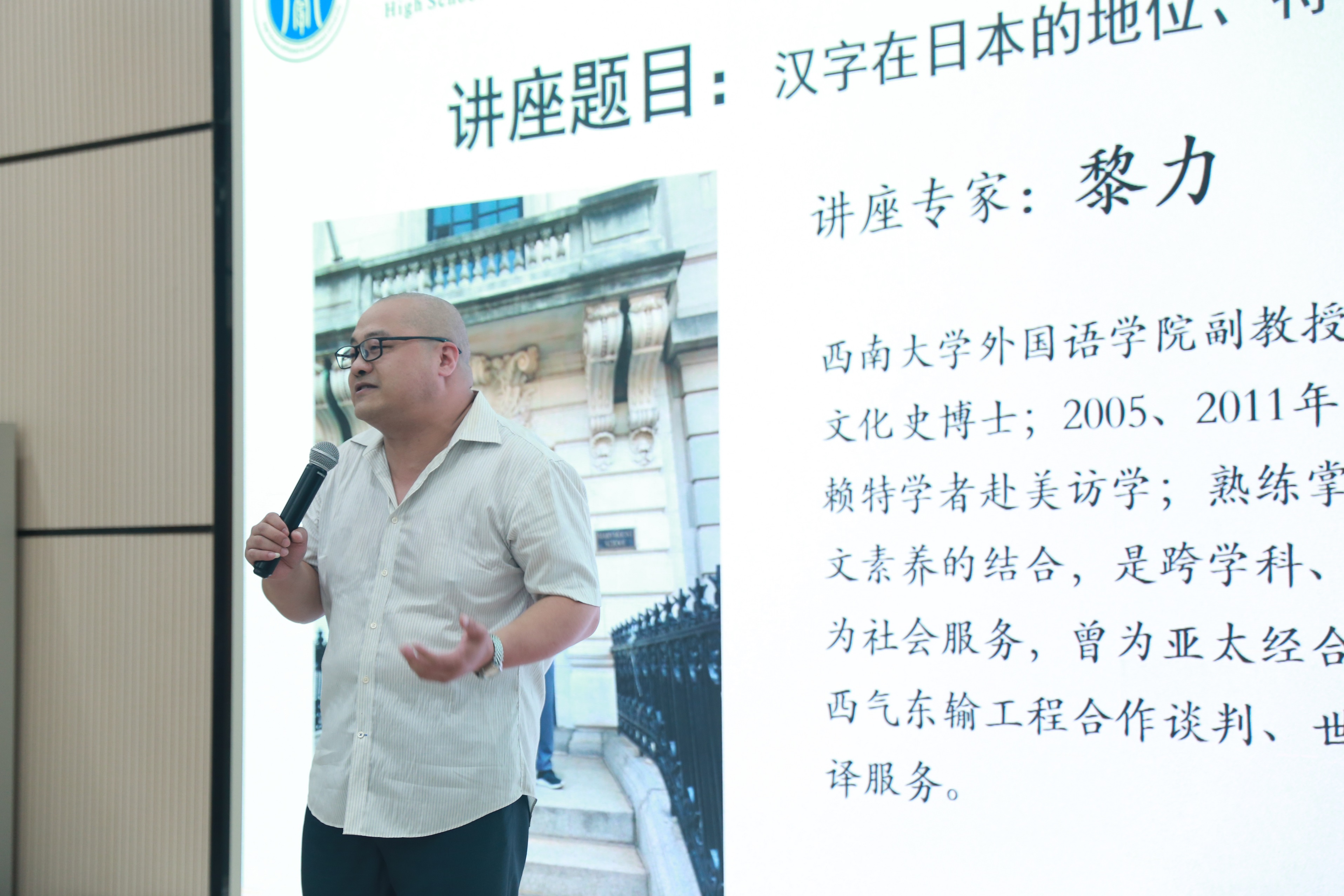 黎力副教授为附中学子带来了一场激情澎湃的讲座,带领大家感悟汉字和日本的关系。西南大学附属中学杨森老师担任本次讲座的主持人。