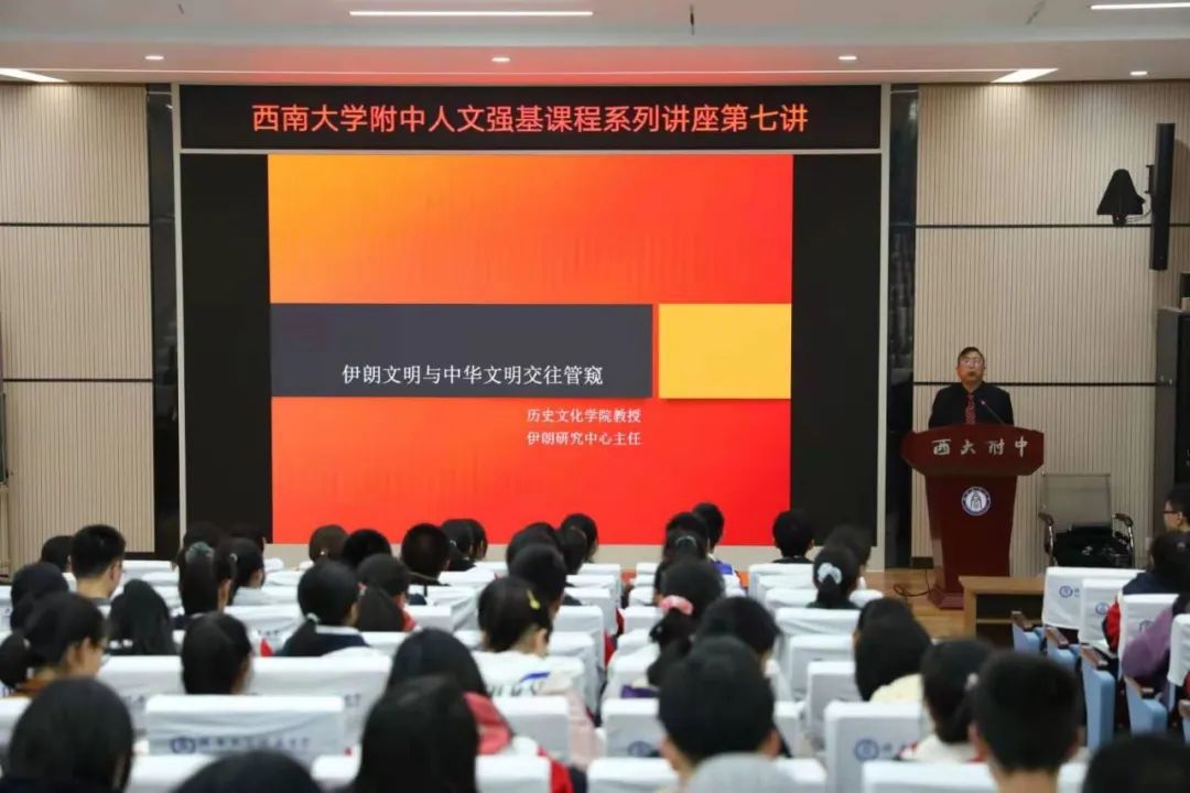 教授、西南大学一带一路研究院副院长冀开运与附中同学趣谈伊朗文明和中华文明的交往。西南大学附中历史老师马彬琼担任讲座主持。