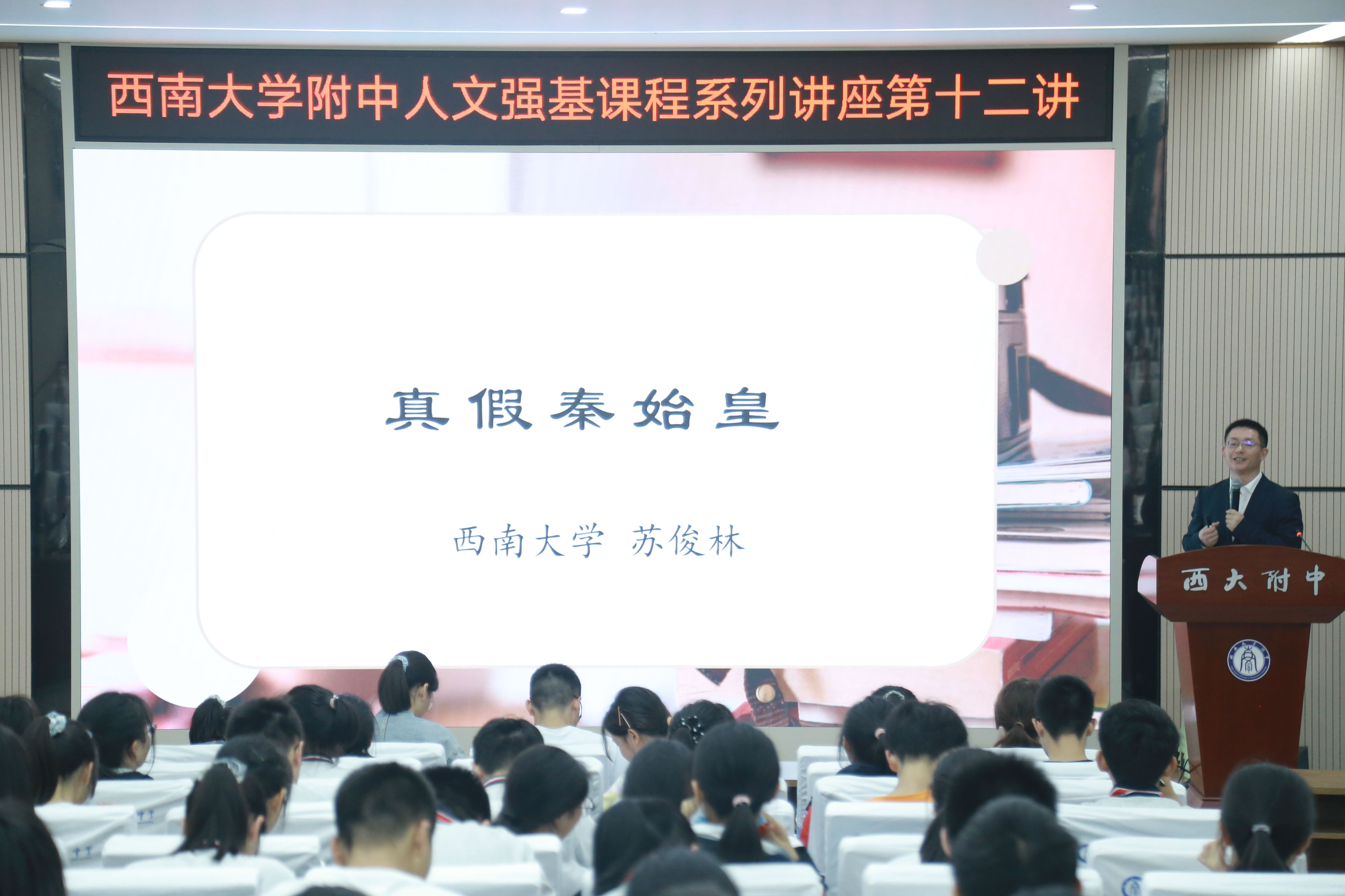 副教授苏俊林为附中学子带来了一场精彩的讲座“真假秦始皇”,苏老师带领大家依据传世文献和简牍共同探讨秦始皇形象的真相。西南大学附中马彬琼老师担任讲座主持。