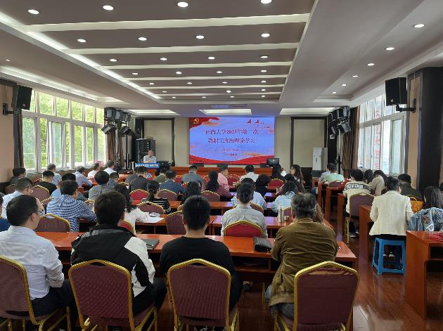 党政领导、教职工参加此次会议。本次会议深入学习了习近平总书记关于国家安全工作的重要论述、教育部关于高校教师违反职业行为十项准则警示案例(第10-11批)、新一轮本科教育教学审核评估方案概述与实施要点,以及传达学习上级和学校全面从严治党工作会议精神,并结合师德师风、意识形态、安全稳定、学生就业等工作进行了宣传教育和工作部署。