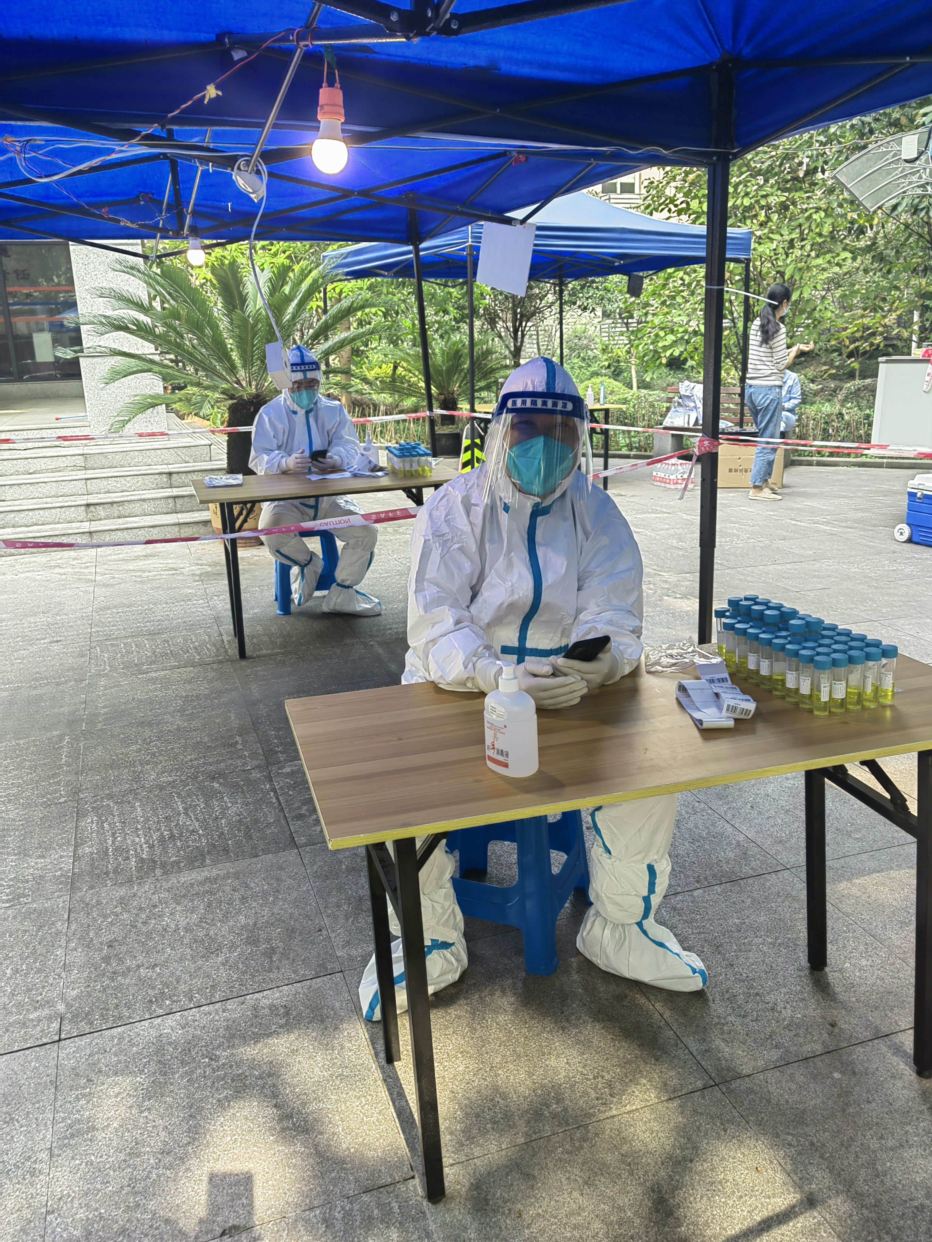 教职工志愿者参与志愿服务共计30余人次。他们参与过核酸检测信息录入、核酸检测秩序维护、家属楼志愿服务工作等,他们忙碌又疲惫的身影穿梭在第二运动场、桃花山、北区家属楼、老文社院广场等地方,他们既当过“小蓝”,当过“大白”,也当过“跑腿小哥”(为家属楼行动不便的教师买菜送菜),哪里需要他们,他们就到哪里,有的老师已经连续工作了十几天,再苦再累也没有一句怨言。每当组织员问到,明天可以参加志愿工作吗?只要没有课程和工作安排的老师们都会积极参与,“疫”往无前。