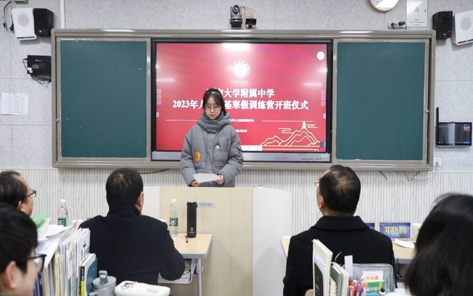 在教师代表和学生代表发言环节,西南大学附中语文组组长苟晓东老师说,希望同学们,通过这次寒假训练营,“看到”学科本质、“遇见”理性思维、“获得”历史眼光、“生出”哲学思辨。西南大学附中高二文科广延班陈思羽同学,从人文强基之于高考,人文强基之于附中,人文强基之于自己等三个方面,代表同学们表达了对人文强基系列行动的认识,和对本次人文强基训练营的期待,并保证,会在接下来的学习中,做到认真、努力、坚持,用热爱去乘风破浪,用追求去再创佳绩。