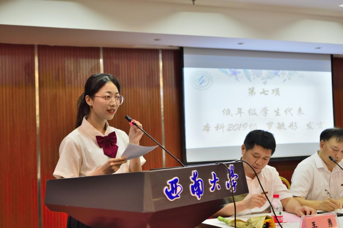 低年级学生代表、本科2019级罗毓彤同学为全体毕业生学长学姐送出了真挚祝福。她代表足球即时比分直播