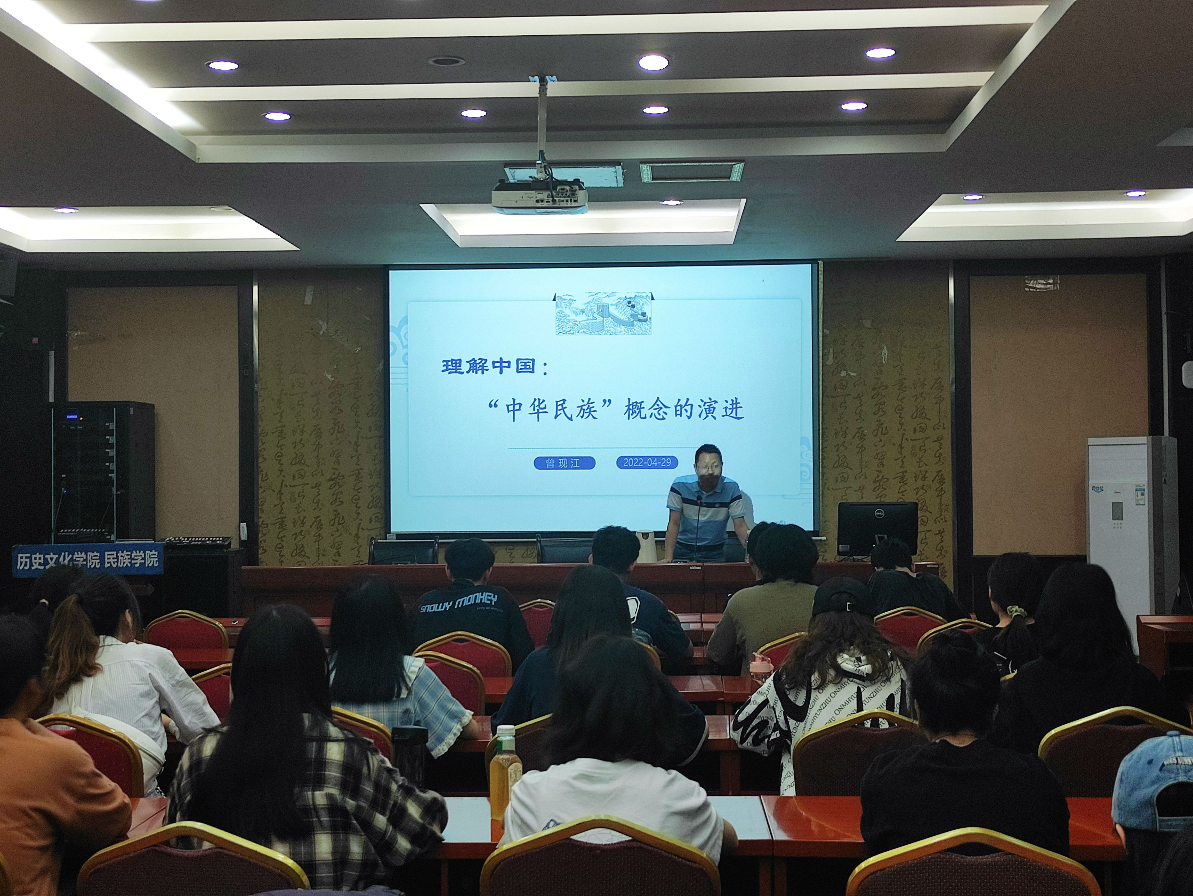 曾现江教授首先指出,概念既是社会的显示器,又是社会的推动器,通过研究概念在时间和空间中的移动、接受、转移和扩散,揭示概念是如何成为社会和政治生活的核心,进而指导社会实践。曾现江教授随后主要从两个方面展开讲座:一是“中华民族”概念的主要思想文化渊源;二是清末以来“中华民族”概念生成与演进。