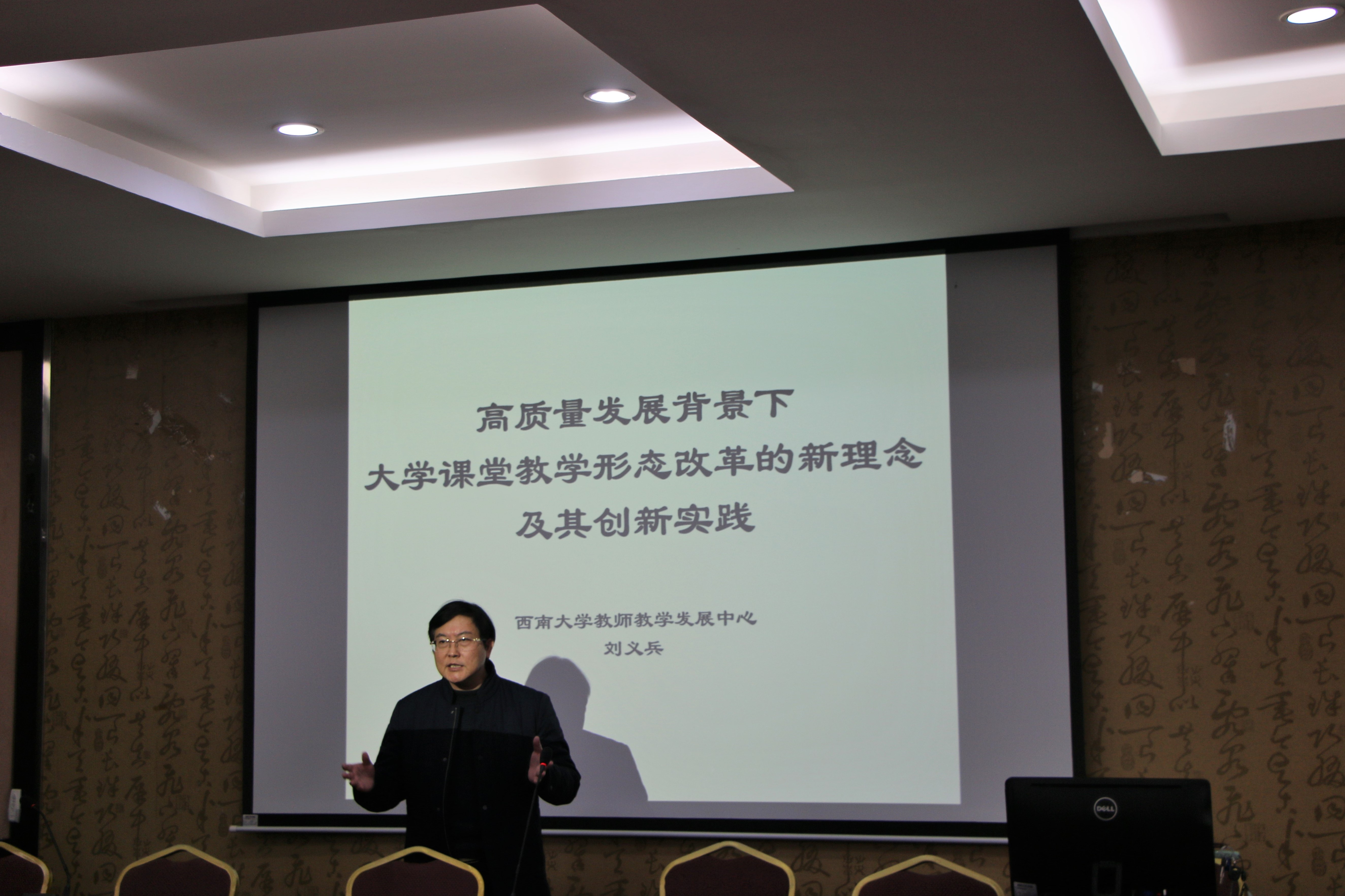 学校教师教学发展中心主任刘义兵教授作为特邀嘉宾,为全院教师带来了题为“高质量发展背景下大学课堂教学形态改革的新理念及其创新实践”的主题报告。他结合自身经历,从国家、社会、文明的高度提出了课堂的意义,并且向在座教师介绍了“在课堂中唤醒学生”的方法,从而树立正确的学习观和知识观。最后他深情地期盼,教师和学生能够在课堂中共同体验知识的幸福与愉悦,更好地认识世界、认识人生。