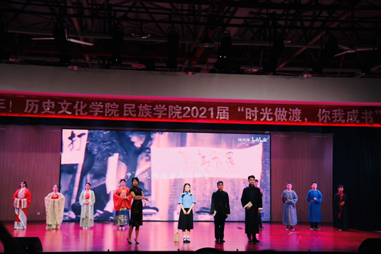 “不学礼,无以立”,中华衣裳取于乾坤,本科学生第二党支部的同学们在《锦绣华裳,行礼如仪》中为观众们进行中华传统礼仪及服饰展示。演员们从汉代礼仪和服饰开始,依次展示了唐、宋、明人的礼仪及服饰,以及民国“觉醒年代”的新青年面貌。他们的展示,跨越了两千多年的历史长河,让观众们感受到了寄托于礼、服、流动于血脉、并一步步走向伟大复兴的中华文明的壮丽。