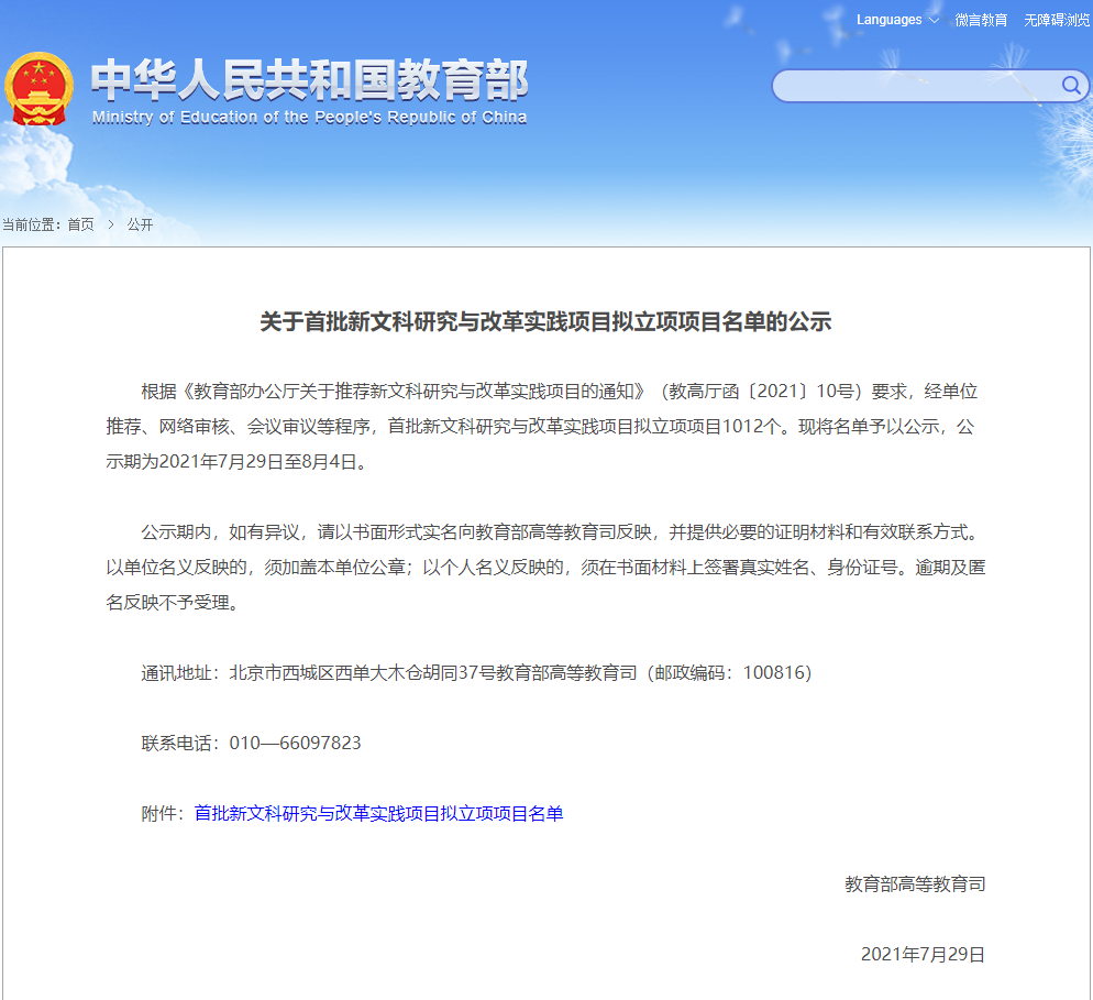 近日,教育部对首批新文科研究与改革实践拟立项项目进行了公示,足球即时比分直播