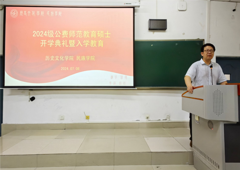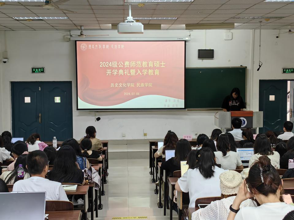 在学校27教101隆重举行2024级公费师范硕士暑期课程开班仪式。来自全国各地的140名新生集聚一堂,共同开启了为期一个月的学习旅程。此次开班仪式旨在激励新生树立坚定教育情怀,明确学习目标,营造良好的学习氛围。