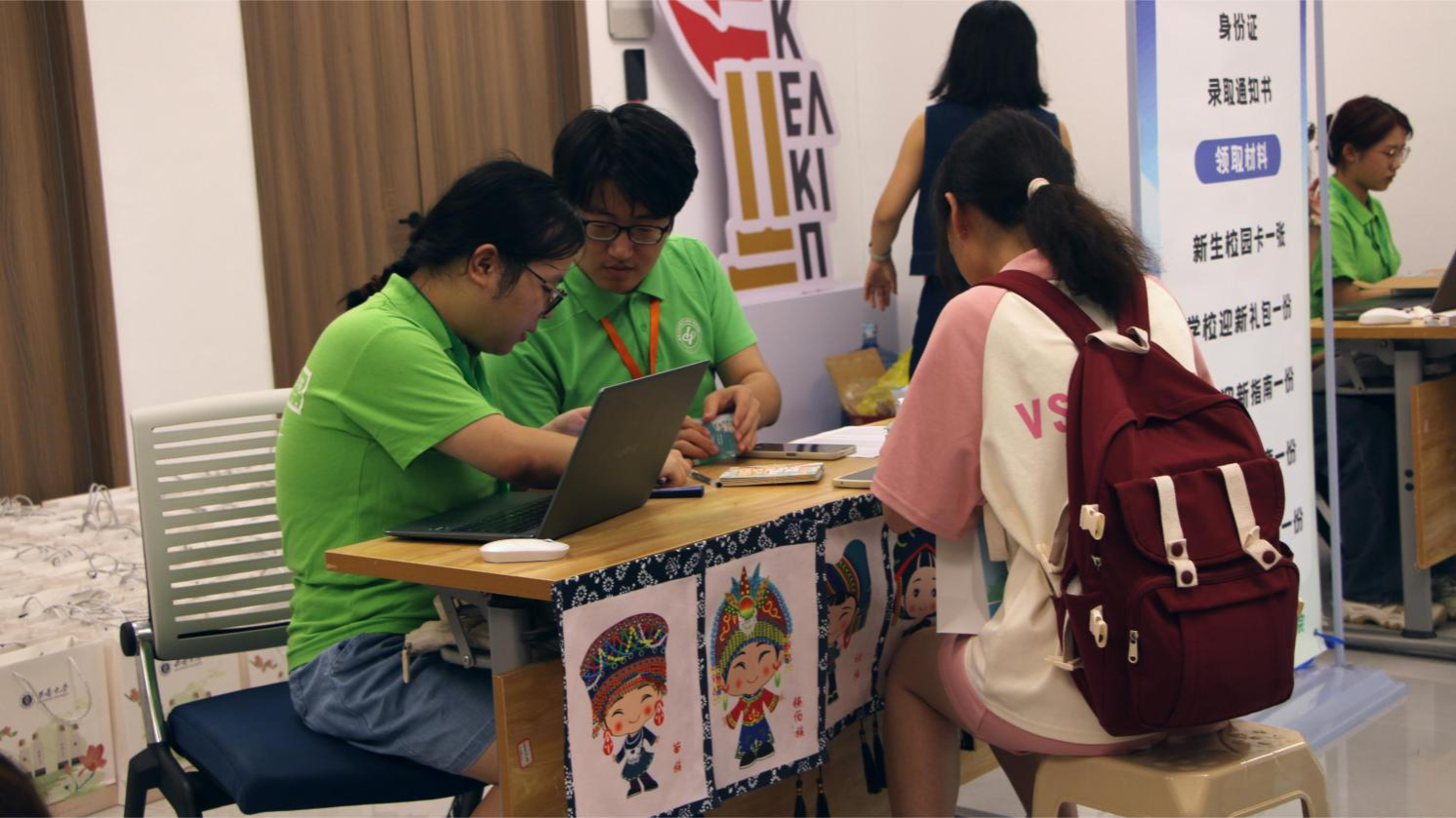 2024级新生辅导员庄伟老师、亚库普·阿卜拉老师和纪蝶老师全程值守报到现场,对新生及新生家长提出的问题做出耐心、细致的解答。