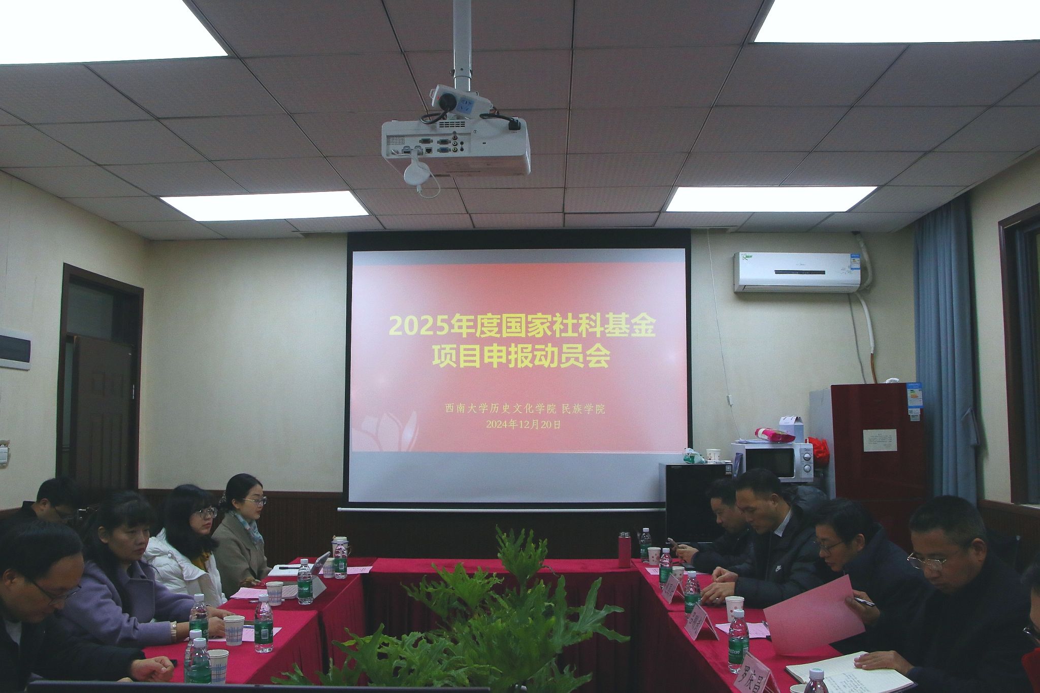 于2024年12月20日下午14:30在抗战大后方中心302会议室顺利召开了2025年度国家社科基金项目申报动员会。社会科学处吕刚武研究员,历史文化足球即时比分直播