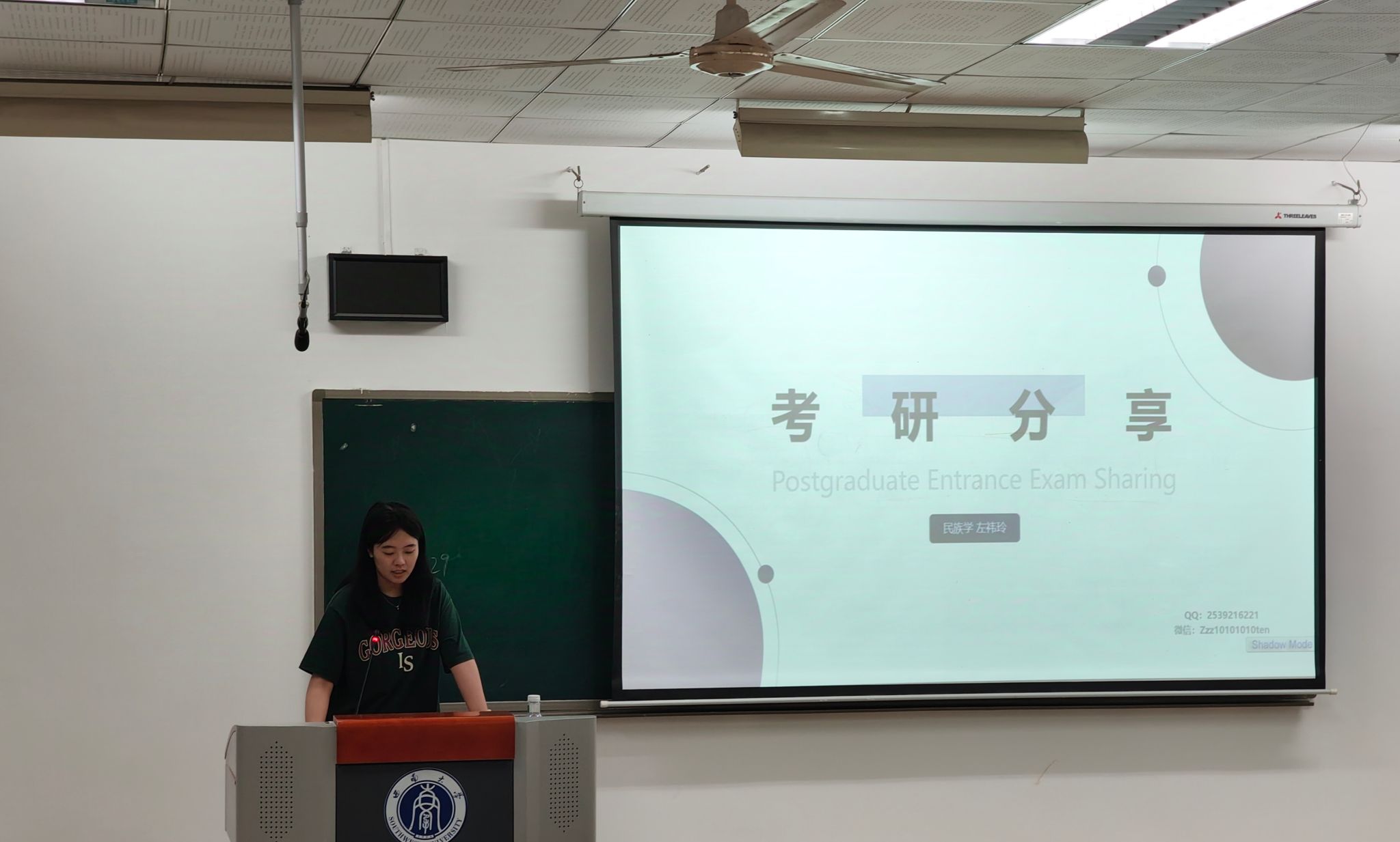 要求和自身经验分别向学弟学妹们分享了历史学、民族学考研本校的经验。围绕教辅教材、实用资源、学习方法、备考计划等各方面进行了分享交流。