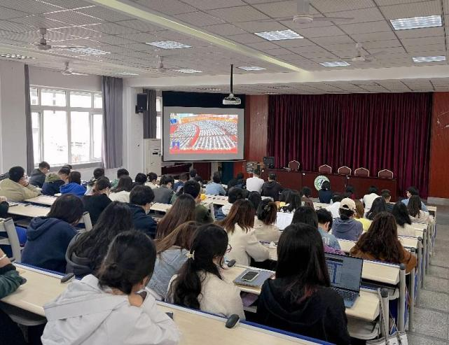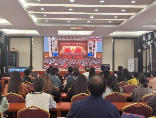 师生党员在荟文楼7楼报告厅和荟文楼442教室两个会场,集中收看中国共产党第二十次全国代表大会开幕会直播,部分师生通过网络、电视等多渠道线上收看开幕会盛况。