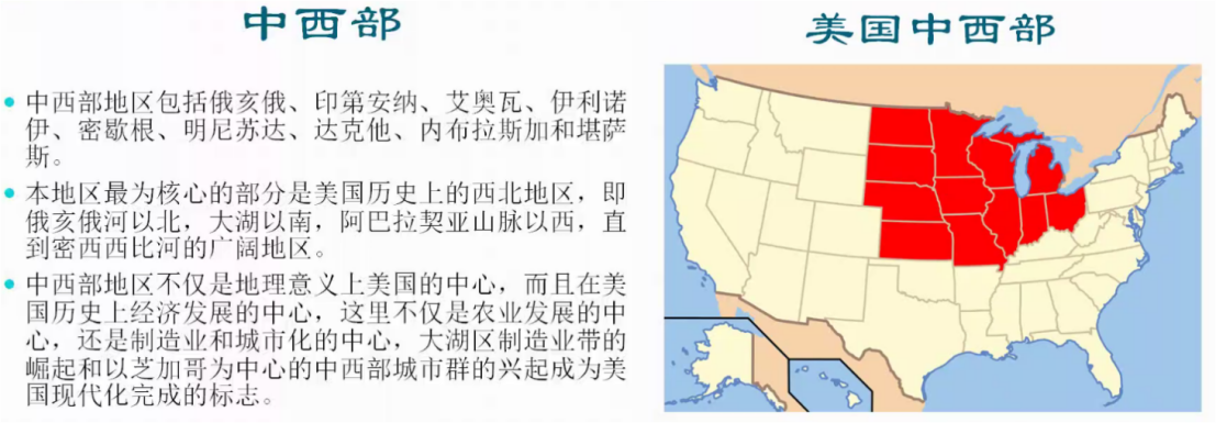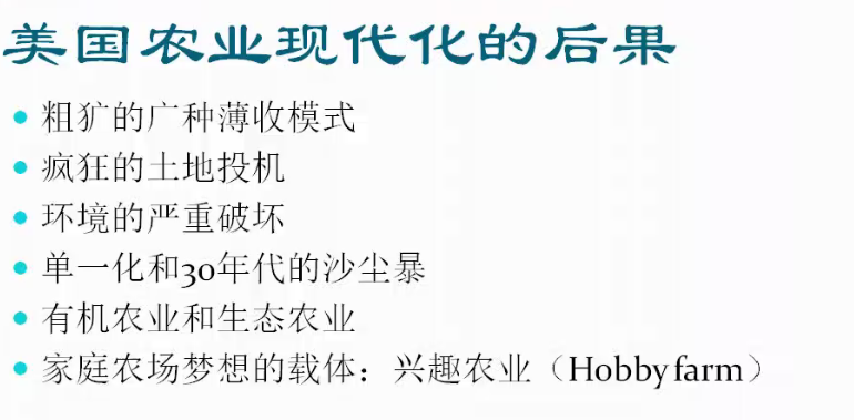 中西部农业的现代化也是城市化的过程。得益于中西部得天独厚的优越地理条件,芝加哥、圣路易斯等城市成功促生了种植业、屠宰业等产业,随即加工业、制造业也发展起来。另一方面,中西部还是西部农业拓殖的模板。白人在拓殖中对自然以及土著进行征服,但这样一种破坏性的现代化进程,引发了北美的环境危机。