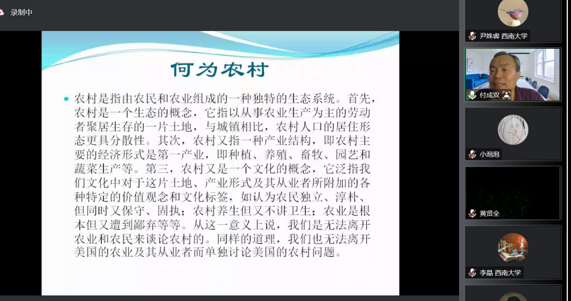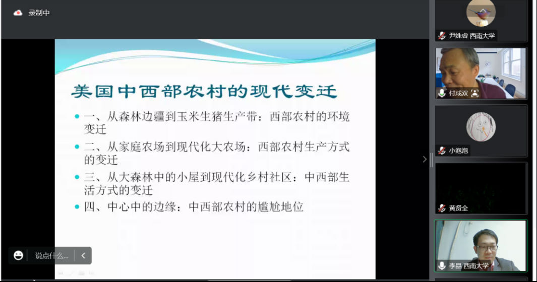 邀请,通过腾讯会议,做了题为“农业现代化与美国中西部农村的演变”的讲座。此次讲座为西南大学嘉陵历史名家讲坛系列讲座之一,由西南大学历史文化足球即时比分直播