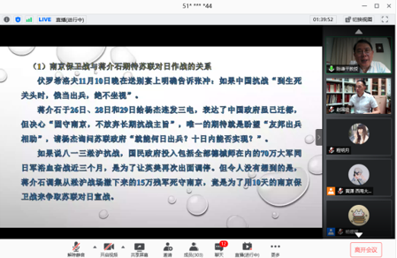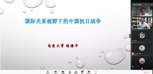 演讲结束过后是提问环节。听众们思考颇多踊跃发言,直播间的观众们也积极发言感谢陈教授的精彩讲授并提出思考,最后由北京大学、西南大学的两位同学以及铁军老师先后提出问题,就本次讲座提出了相关的想法与思考,并进行了热烈的讨论,讨论过后本次讲座也落下帷幕。值此抗战胜利七十五周年之际,陈教授本次讲座从国际视野出发重新看待抗日战争,为听众们带来了新的视野和思考,获益匪浅。