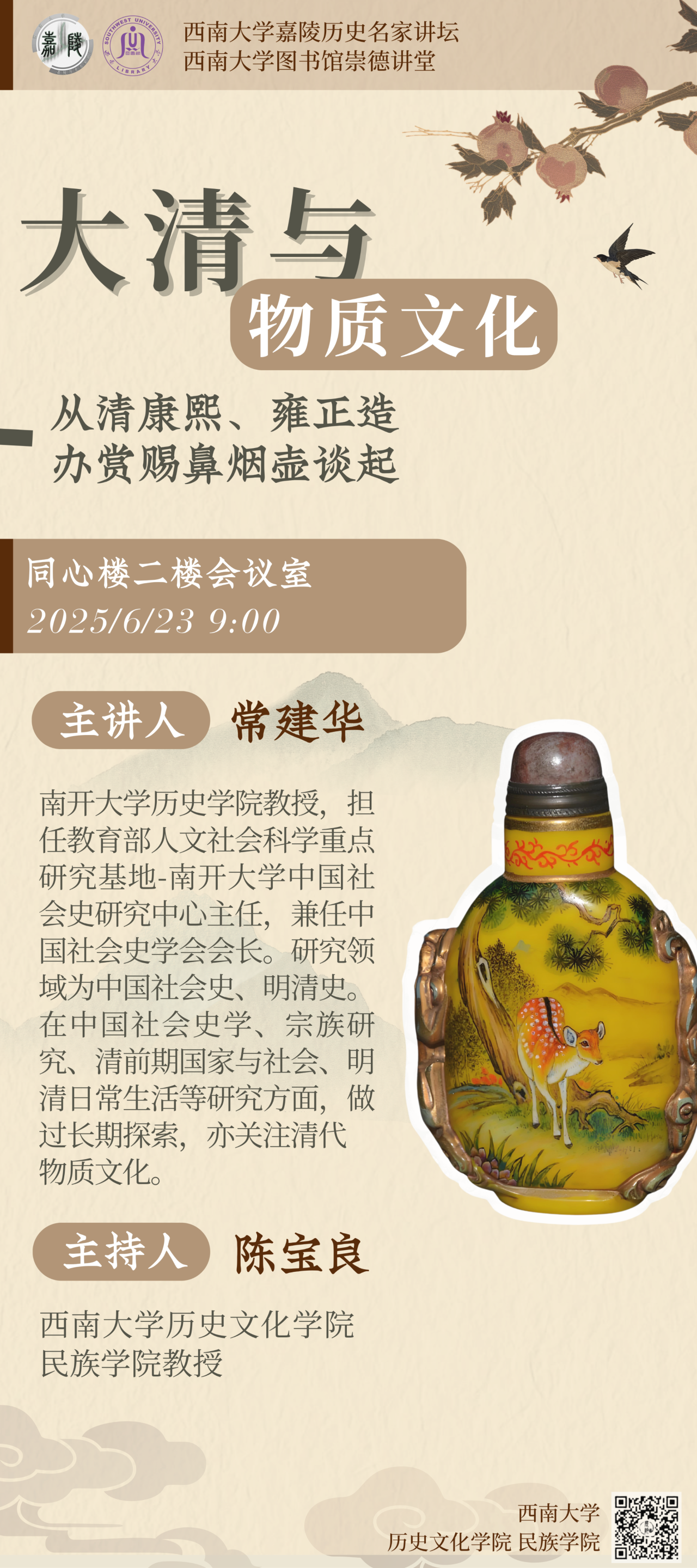 三、主讲人常建华。南开大学历史足球即时比分直播 教授,担任教育部人文社会科学重点研究基地-南开大学中国社会史研究中心主任,兼任中国社会史学会会长。研究领域为中国社会史、明清史。在中国社会史学、宗族研究、清前期国家与社会、明清日常生活等研究方面,做过长期探索,亦关注清代物质文化。